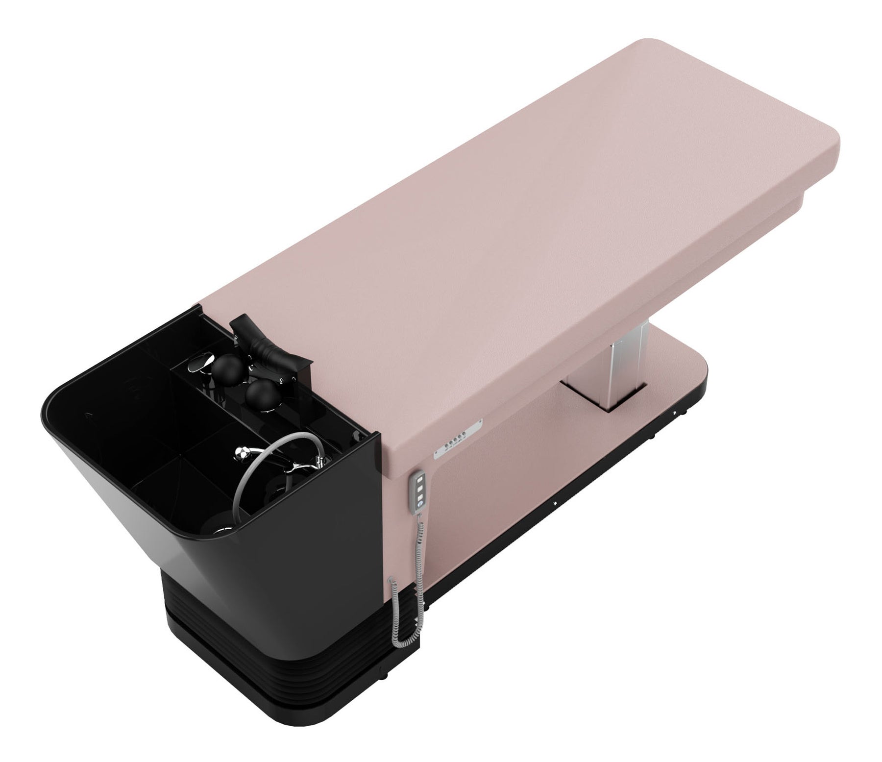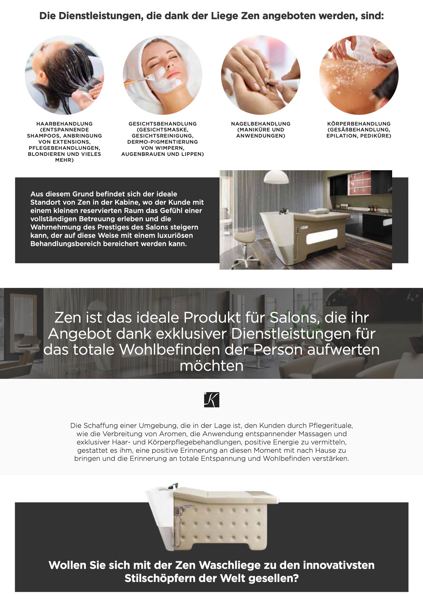Kein ergonomisch geformter Sessel mehr, in dem der Kunden sich entspannen kann, sondern eine Liege mit fortschrittlichen Funktionen und Technologien, auf der jede Person bequem liegen und mit Top-Behandlungen verwöhnt werden kann.